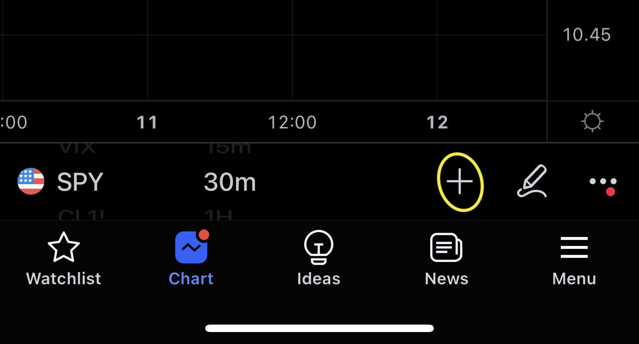 On the iPhone and iPad, the user interface is slightly different from the web and app Trading View versions. Use the steps below to access the indicators and indicator templates.