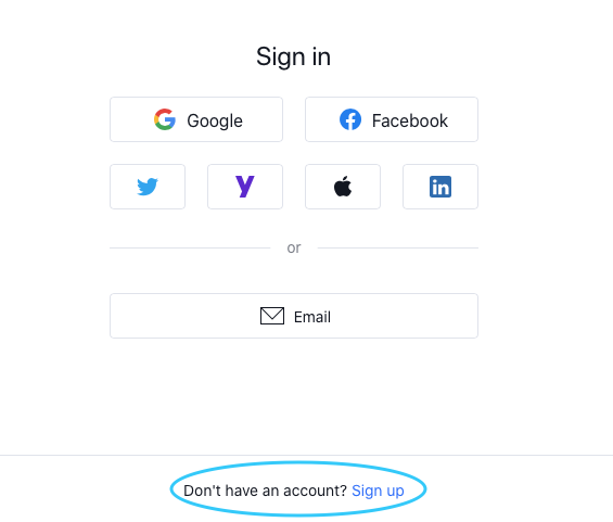 - In the resulting dialog, click the circled 'Sign up' button at the bottom, which will change the title to 'Sign Up' and then select either a social media profile or your email address as your account login. Follow the on-screen prompts to complete your account creation.
